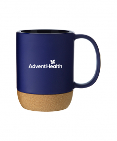 13 oz stoneware: matte color out / gloss color in with cork baseHand wash recommended. Do not microwave. Complies with FDA, Prop 65. 4.625" H x 5" W