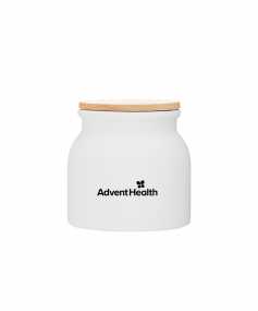 16.9 oz stoneware: matte white out / glossy white in with push-on bamboo lid; Hand wash recommended; Microwave safe with non-metallic imprint; 4 3/16 h x 4 3/16 (w/handle) w ; 500mL.