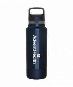 25 oz double wall 18/8 stainless steel thermal bottle with copper vacuum insulation, threaded one-touch push-button lid, locking mechanism, carrying handle, and rubberized base - patent pending - gift box included; Hand wash recommended; Do not microwave; 11 h x 3 w ; 739mL.