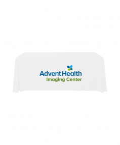 6' Standard PolyPoplin Throw style table cover with one color logo. Designed for quick and easy use while looking great. All corners are rounded meaning they will not gather and lay on the floor. Floor length on all 4 sides. Made from woven polyester. 72" L x 30" D x 29" H
