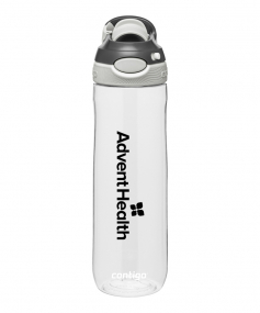 24 oz patented single wall [BPA-free] Eastman Tritan copolyester bottle with AUTOSPOUT threaded lid, spout shield, one-touch push-button, carrying handle with carabiner, and locking mechanism.