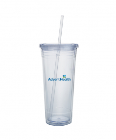 This high-quality 24 oz. sweatproof tumbler with double-wall insulation is perfect for your cold beverages. The screw-on lid comes with a removable drinking straw.