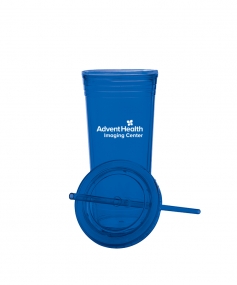 This high-quality 24 oz. sweatproof tumbler with double-wall insulation is perfect for your cold beverages. The screw-on lid comes with a removable drinking straw.