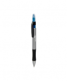 Retractable pen and highlighter in one! Mechanism: Plunger-Action Pen and Two-Piece Highlighter. Ink Color/Point Style: Black ink with medium point pen; Highlighter matches trim color. 6 1/8" L x 7/16" Diameter.