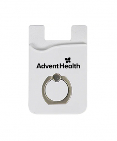 Featuring a rubberized plastic wallet with metal ring attachment, the phone grip holds several cards at once and serves as a phone stand and holder. 3.5" W x 2.25" H x 0.35" D.