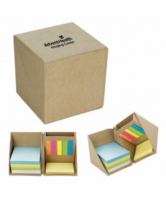 The cube organizer contains 4 great features: 3" x 3" notepad; 3" x 2" adhesive notepad, Sticky Flags with 5 neon colors and Pencil holder.