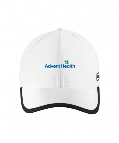 Fabric is 100% polyester pinhole woven mesh with structured profile, mid features, black reflective O heat transfer on side panel black reflective welding on bill, and OGIO seam taping. Low-profile hook and loop with black reflective stacked O heat transfers.